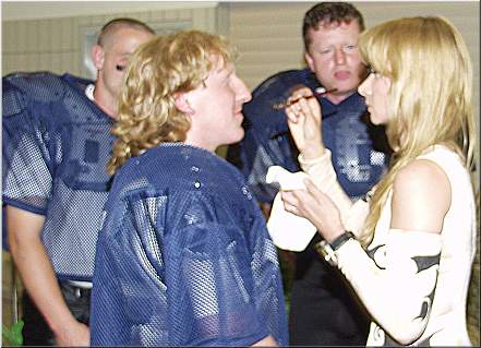 um ihre Kriegsbemalung zu bekommen für die Show zur Ausstellung